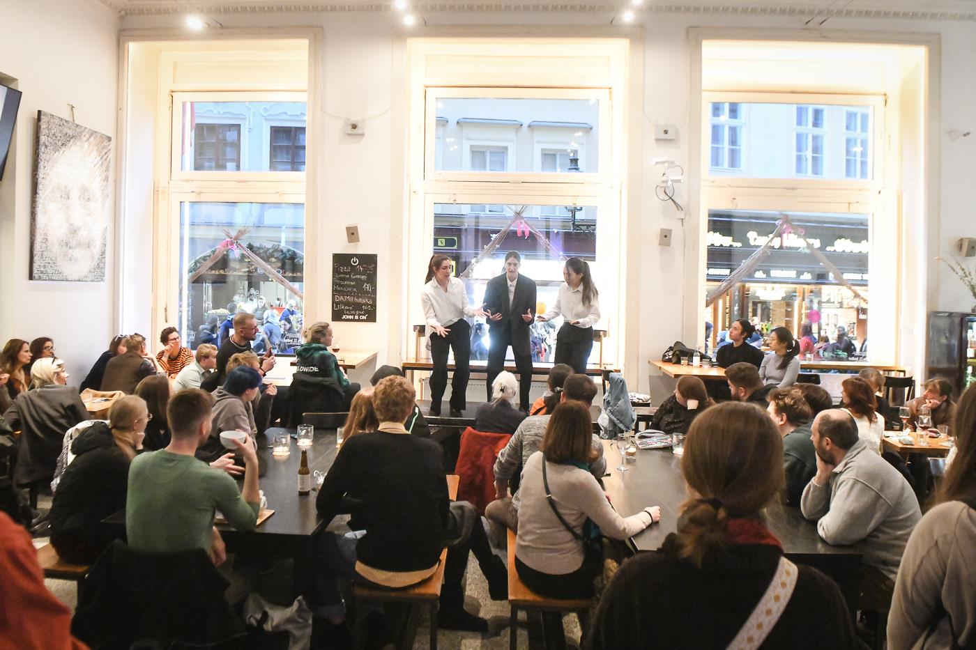 v sobotu 28. března jsme v rámci 14. ročníku Noci divadel s podtitulem Pravda, absurdita nabídli 14 bodů programu - představení, performance, workshopy, otevřenou zkoušku a další. To vše zdarma či za dobrovolný příspěvek. Přivítali jsme téměř 500 návštěvníků.