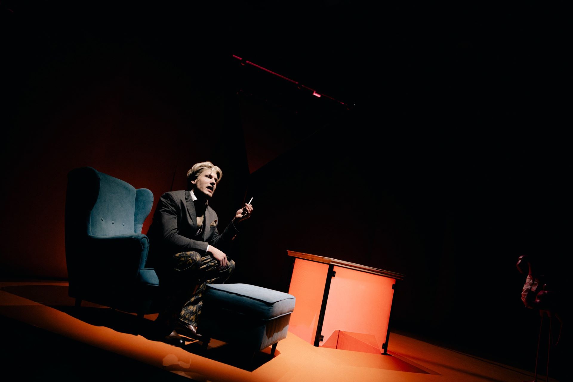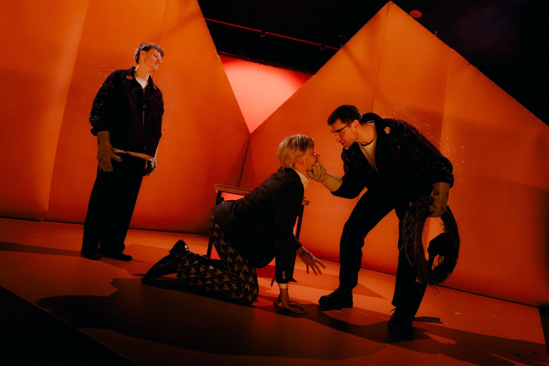 Upozornění: Inscenace tematizuje násilí. Na jevišti se v souladu s uměleckým záměrem kouří a používá kouřostroj a stroboskopické efekty.