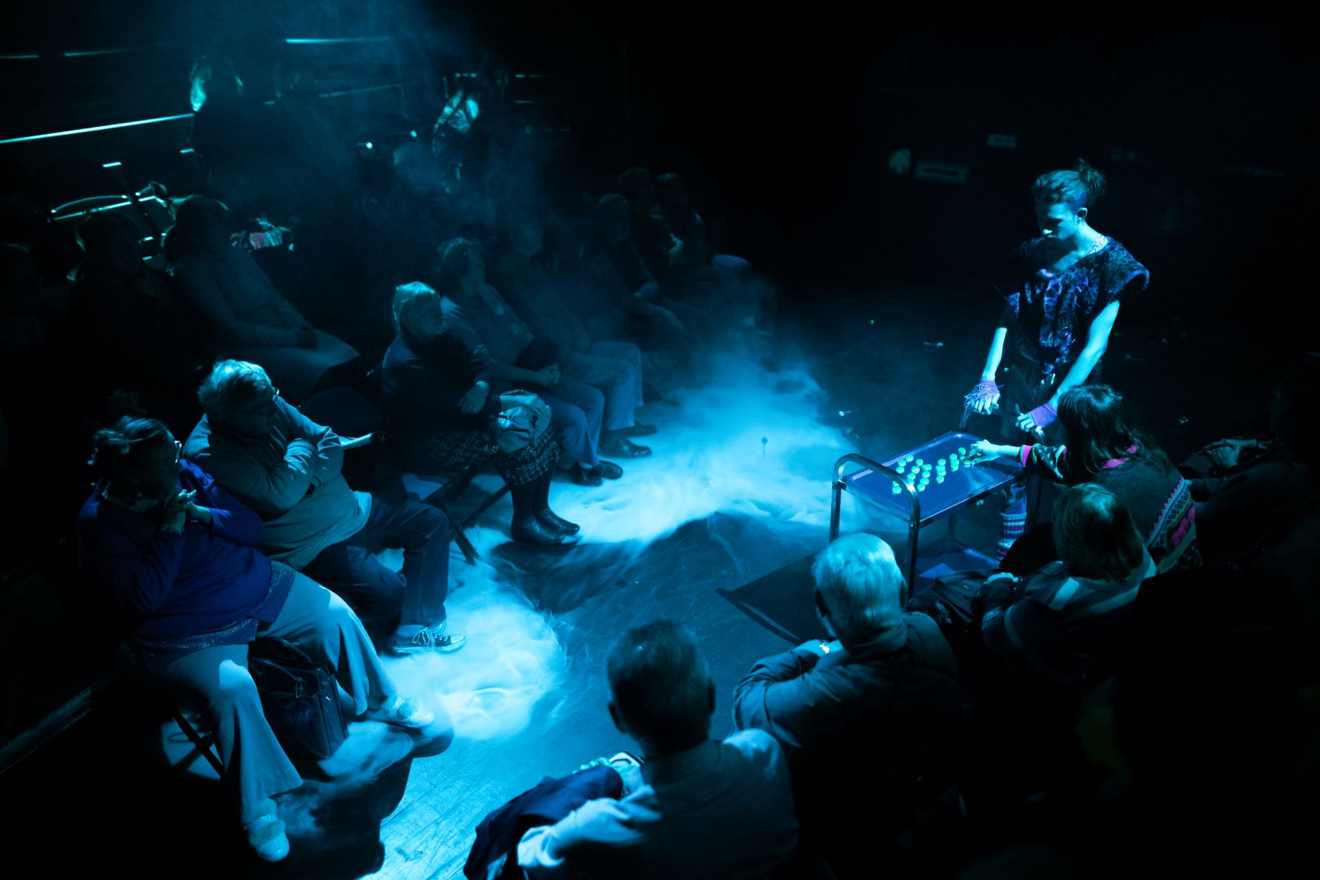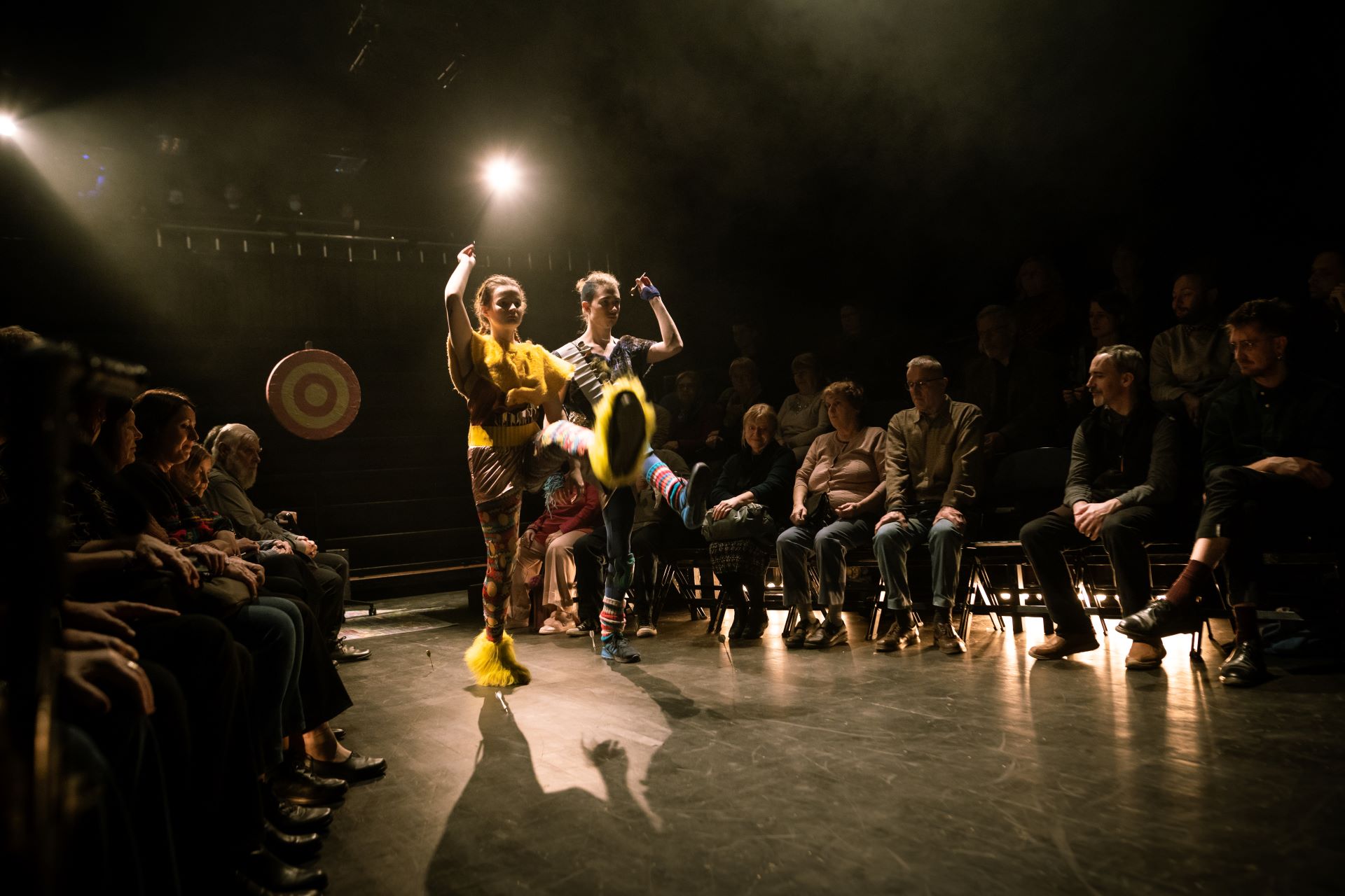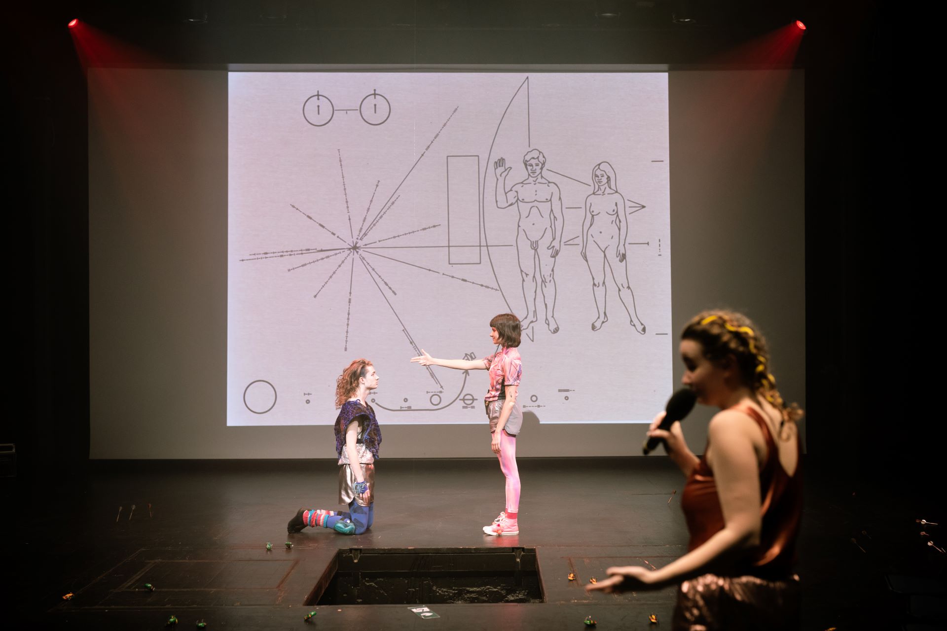 Co spojuje sondu Voyager a plavecký bazén? Kdy se jediný pohled stává pro diváka hrozbou a kdy se hrozba mění ve hru? A jak souvisí jedovaté žáby z amazonské džungle s Adolfem Hitlerem? Divadelní inscenace na pomezí pohybového a dokumentárního divadla ohledává a zviditelňuje leckdy neviditelné řízení našeho pohledu, směru i kroku.